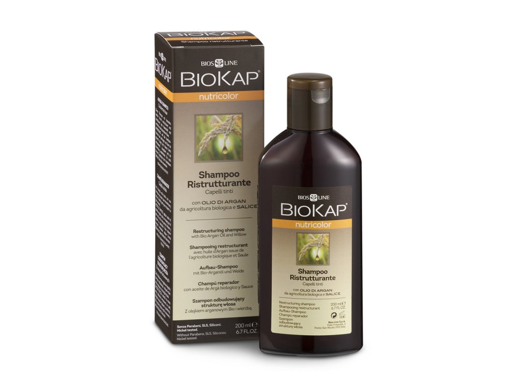 BIOKAP Nutricolor obnovující šampón neobsahuje SLS, SLES, parabeny ani silikony.Šampon můžete používat na všechny typy a barvy vlasů. Šampon obsahuje rostlinné látky, které zajišťují mimořádně jemné čištění vlasů a jsou prospěšné pro pokožku hlavy. Zároveň posilují vlasové vlákno, díky kterému mají vlasy větší objem a jsou jemnější. Tip pro vás: Pro ideální péči o barvené vlasy můžete používat v kombinaci s BIOKAP Nutricolor Kondicionérem na barvené vlasy. Šampon je určen na každodenní používání, ale kondicionér doporučujeme používat jen každé druhé mytí.