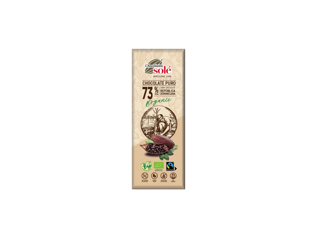 Tato malá čokoládka obsahuje vysoký podíl špičkového dominikánského bio kakaa a přírodní třtinový cukr z Brazílie. Ovoněná je pouze čistou vanilkou a neobsahuje žádné emulgátory. Bio čokolády značky SOLÉ na sobě nesou logo FAIR TRADE. Fair trade - spravedlivý obchod - garantuje farmářům z rozvojových zemí spravedlivou odměnu a zakazuje otrockou a dětskou práci.